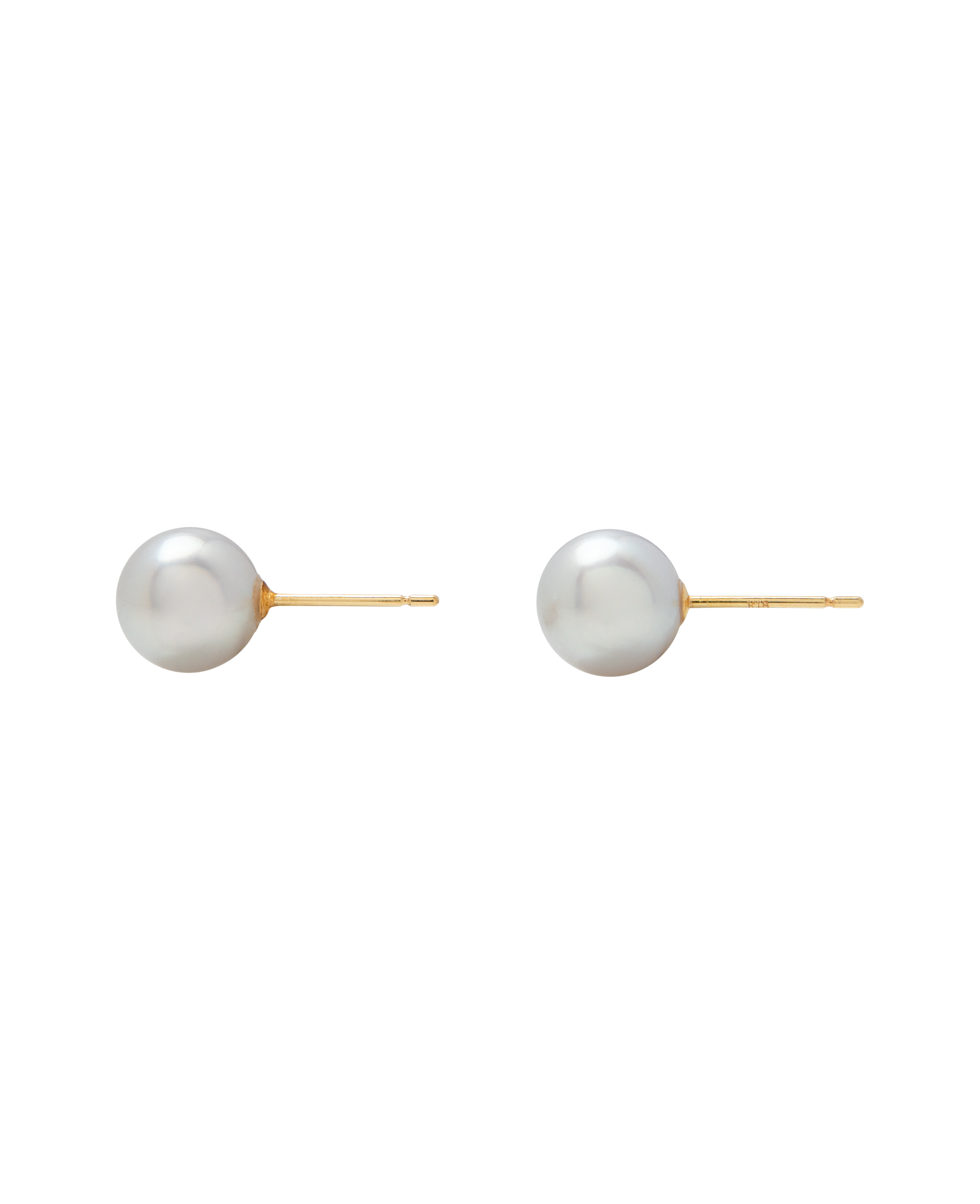 Naturally rare, Akoya grey pearls form when specific oyster and water conditions allow silver-grey pigments to develop organically — a phenomenon seen in only a small fraction of Akoya harvests. Exceptionally round with a sharp, mirror-like lustre, they reflect light with calm precision. Balanced in tone, neither cool nor warm, the grey hue feels modern and effortless on the skin. Set in 18k gold, these studs move seamlessly from everyday wear to special moments.