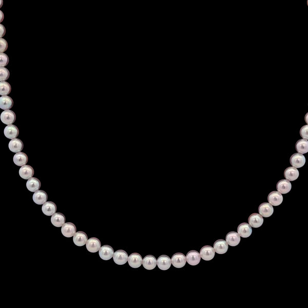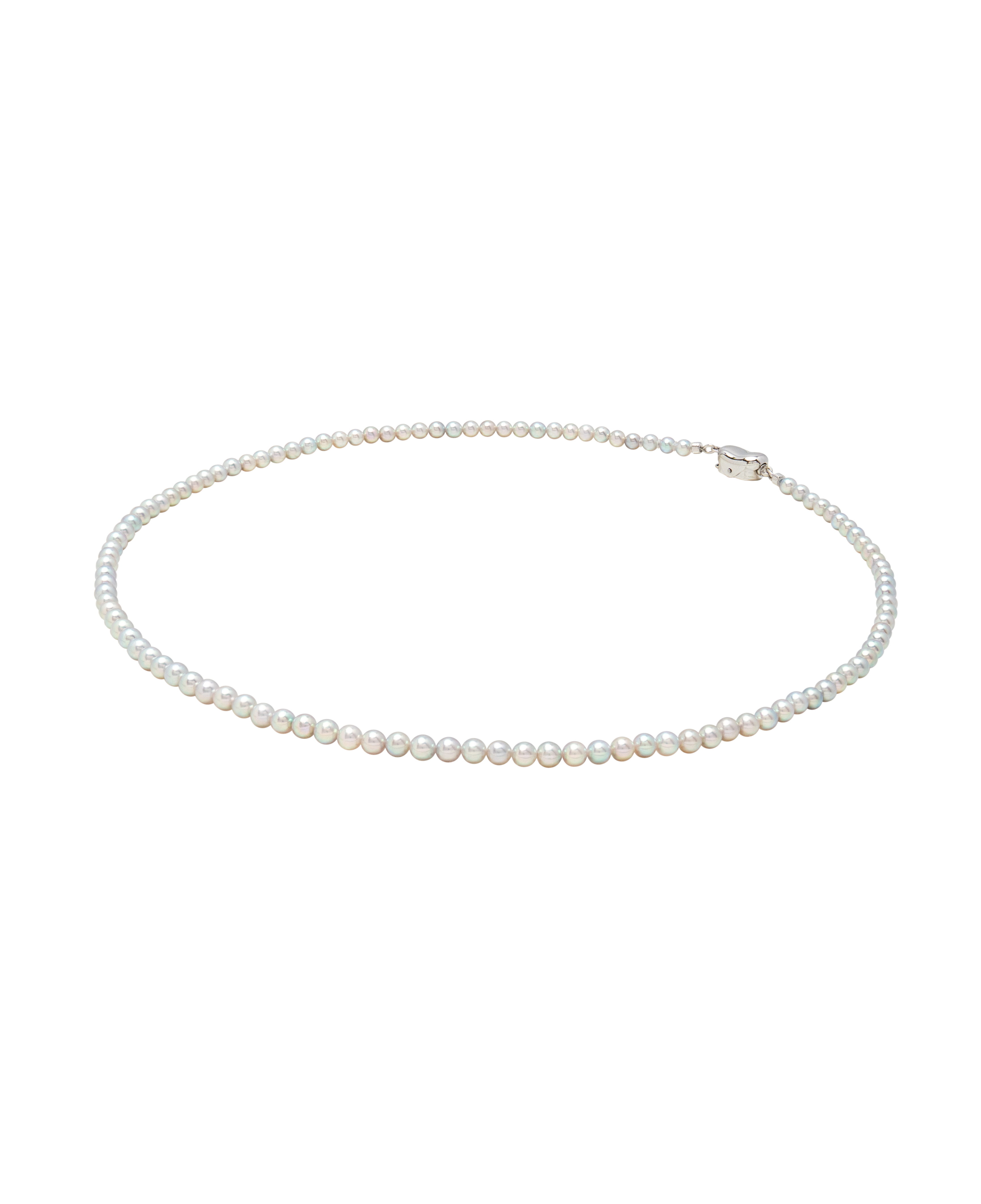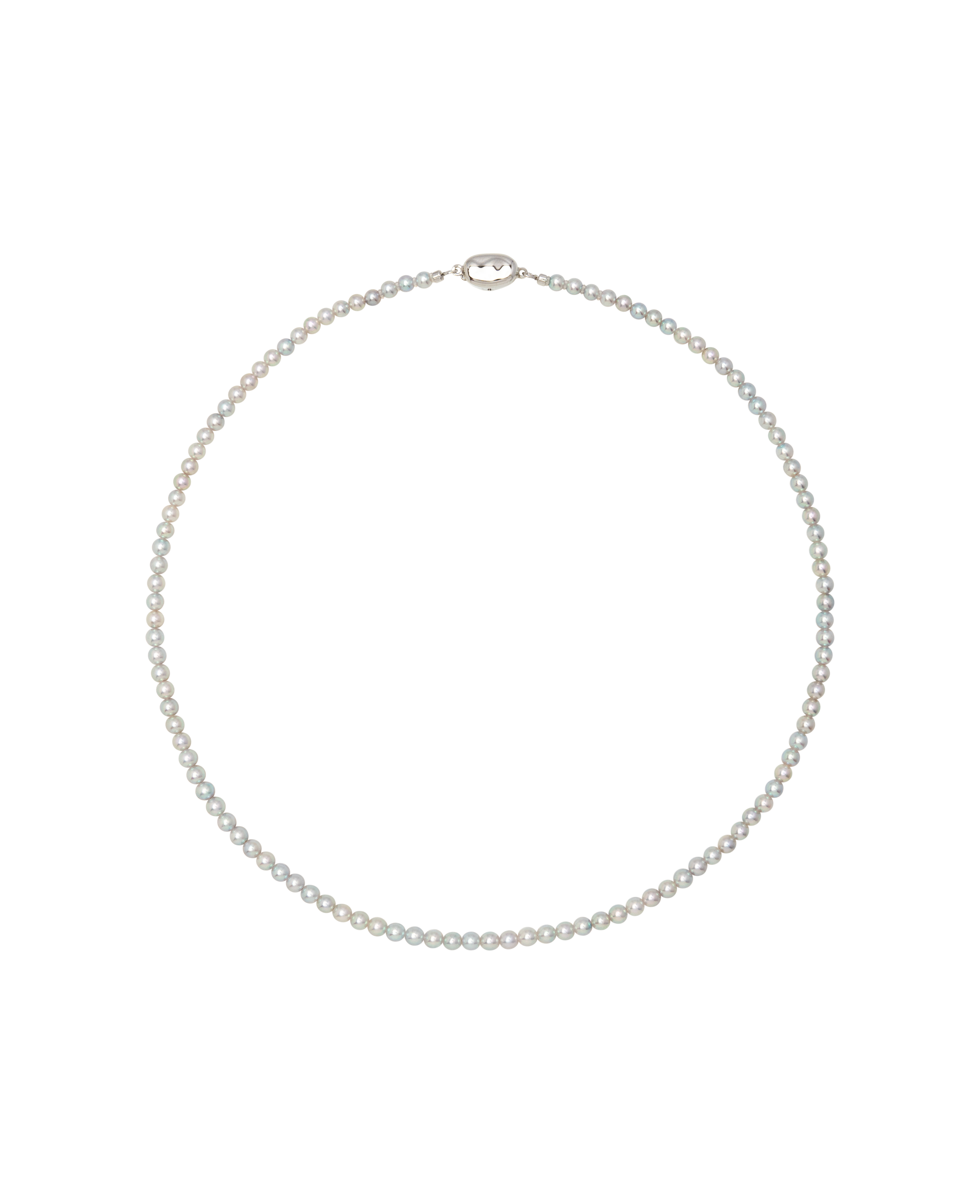 Certified in Japan as Aurora Blue Rose by the Pearl Science Laboratory, this necklace features Akoya pearls of the highest grade. Natural silver-blue to silver-grey tones are layered with soft rose and violet overtones, revealing a mirror-like depth that feels quietly luxurious.