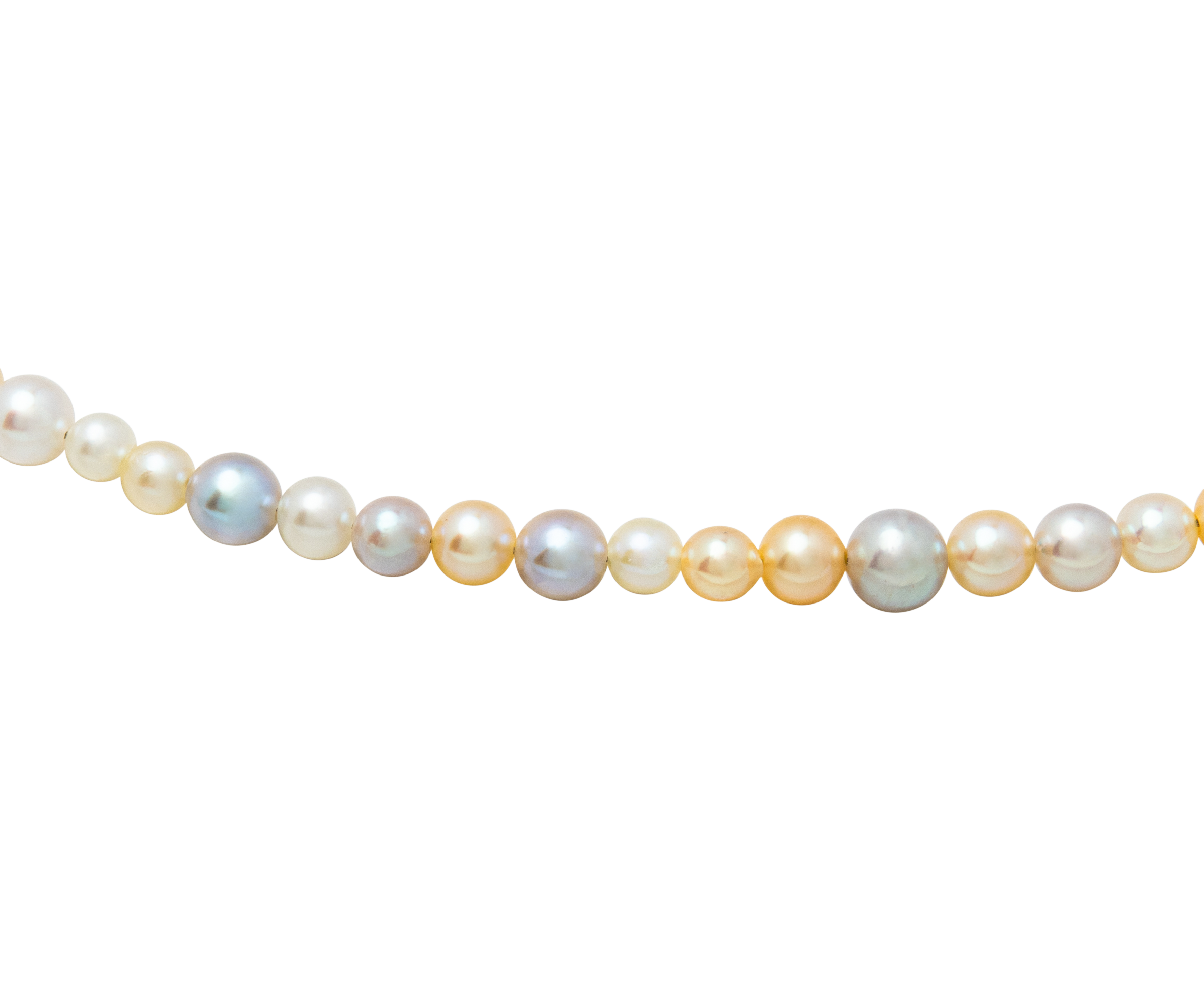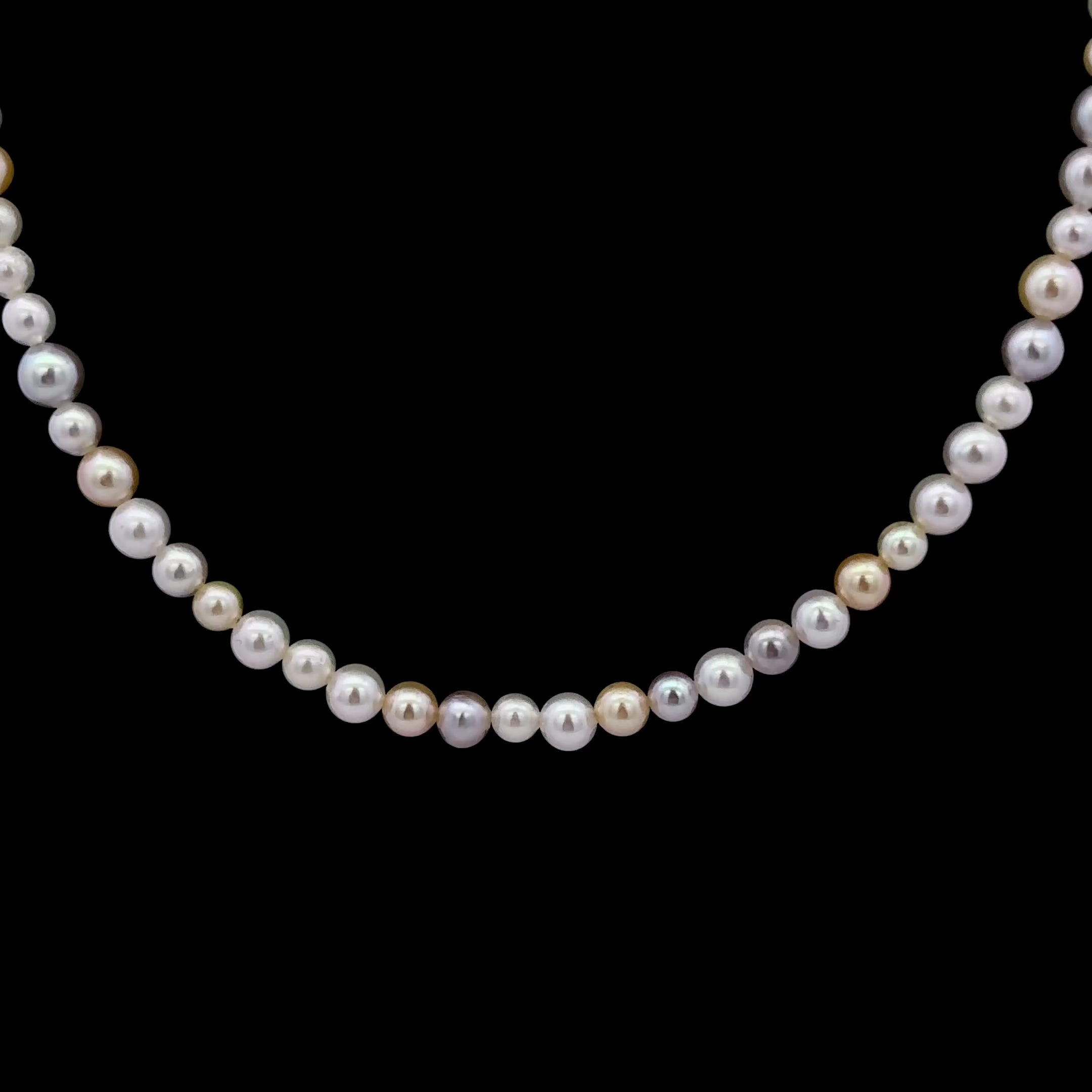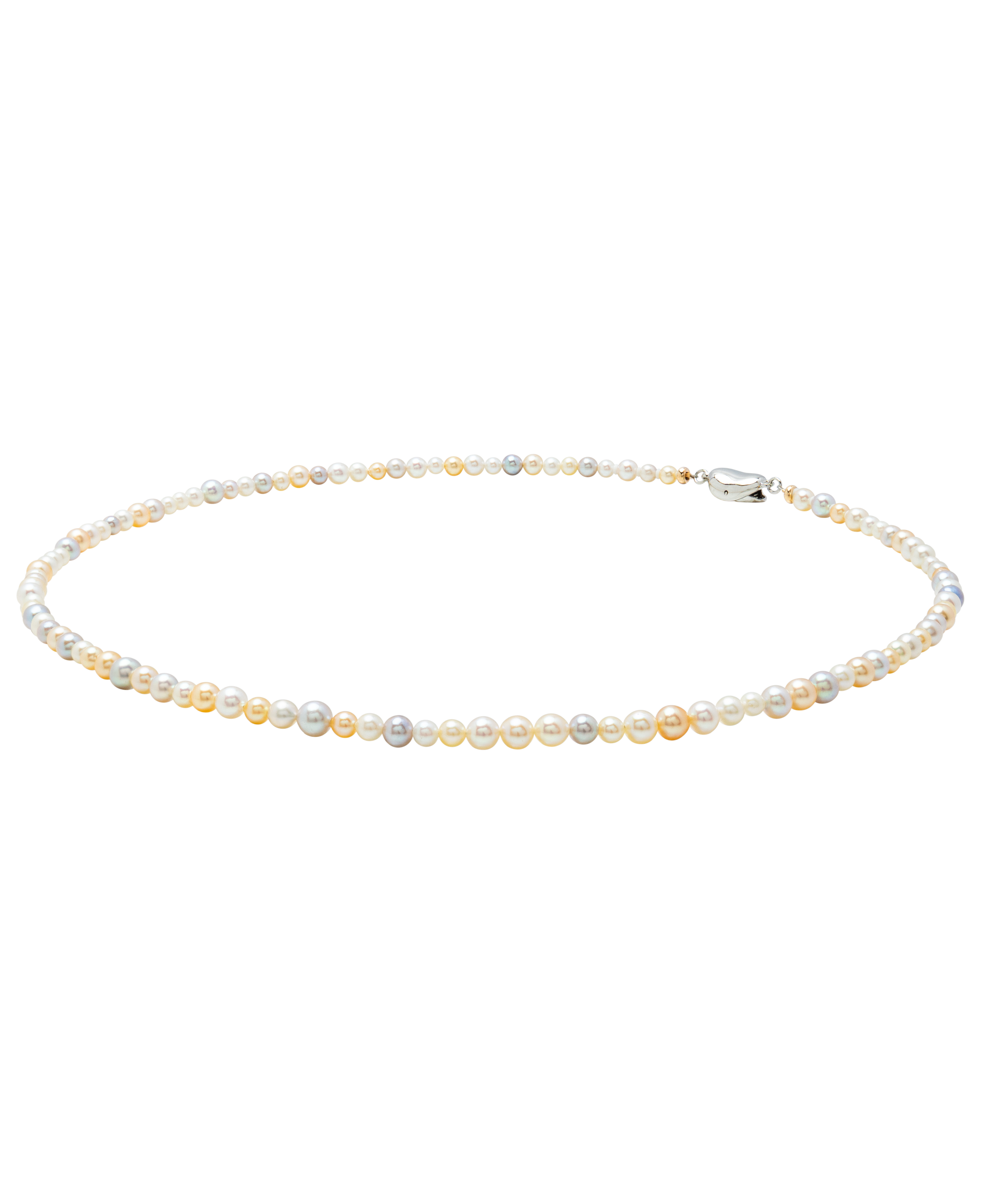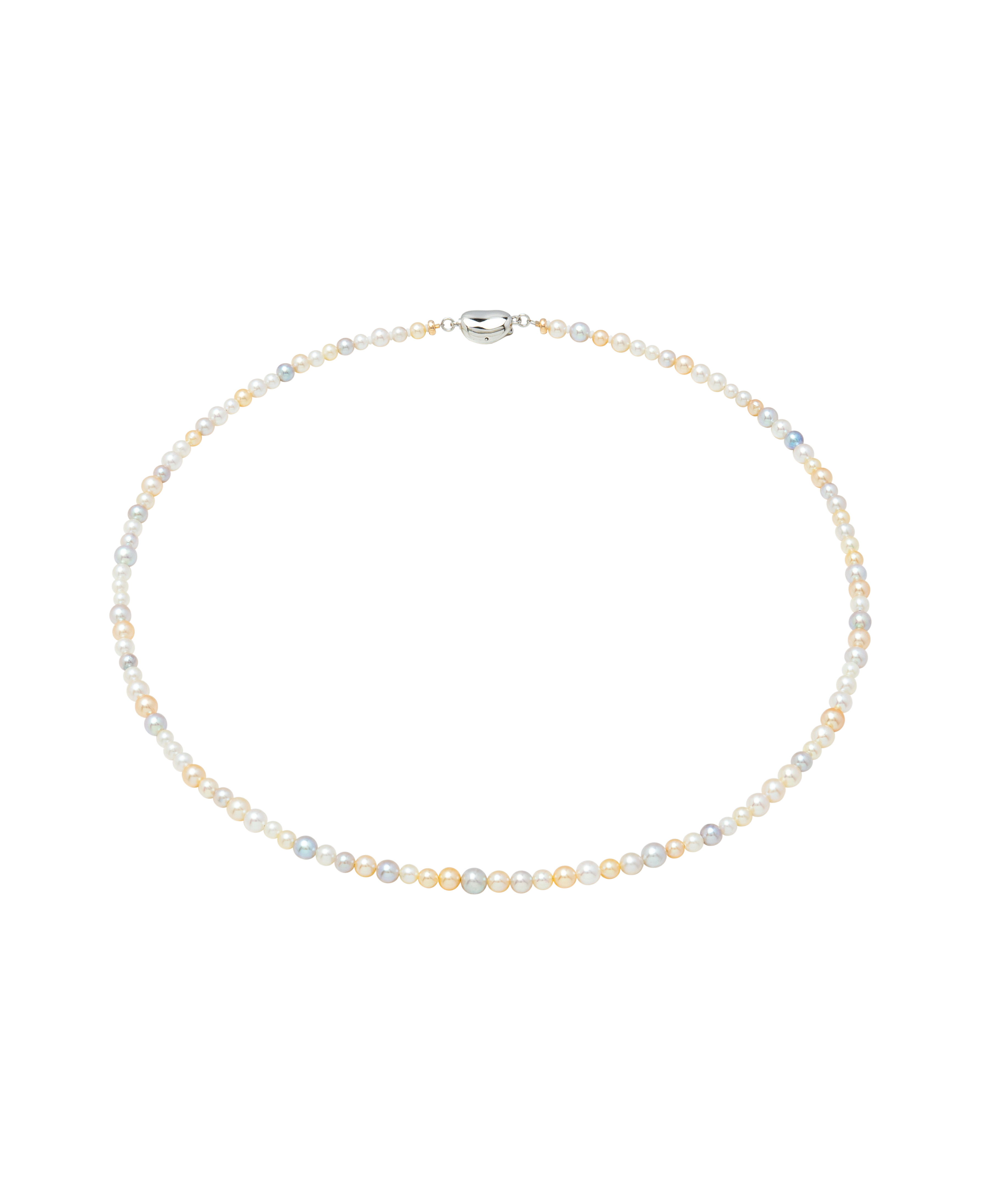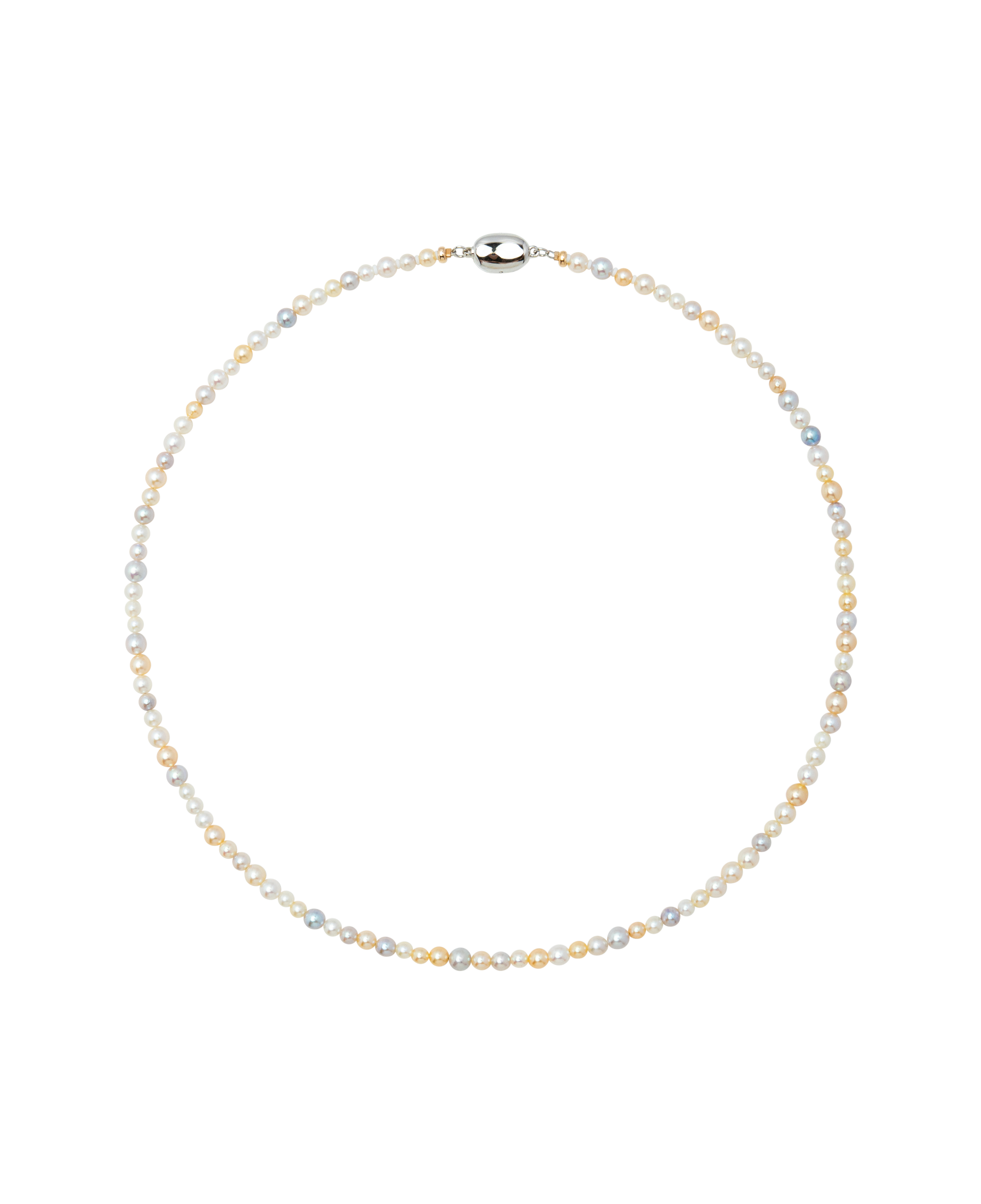 Sweet and milky, like the first bite of soft cream candyThe Candy Akoya Mini Necklace features natural Japanese Akoya pearls in a soft gradient of classic white (≈80% of production), silver-grey (≈15%), and the rarest champagne gold (≈5%), carefully selected and hand-strung to flow seamlessly from hue to hue.