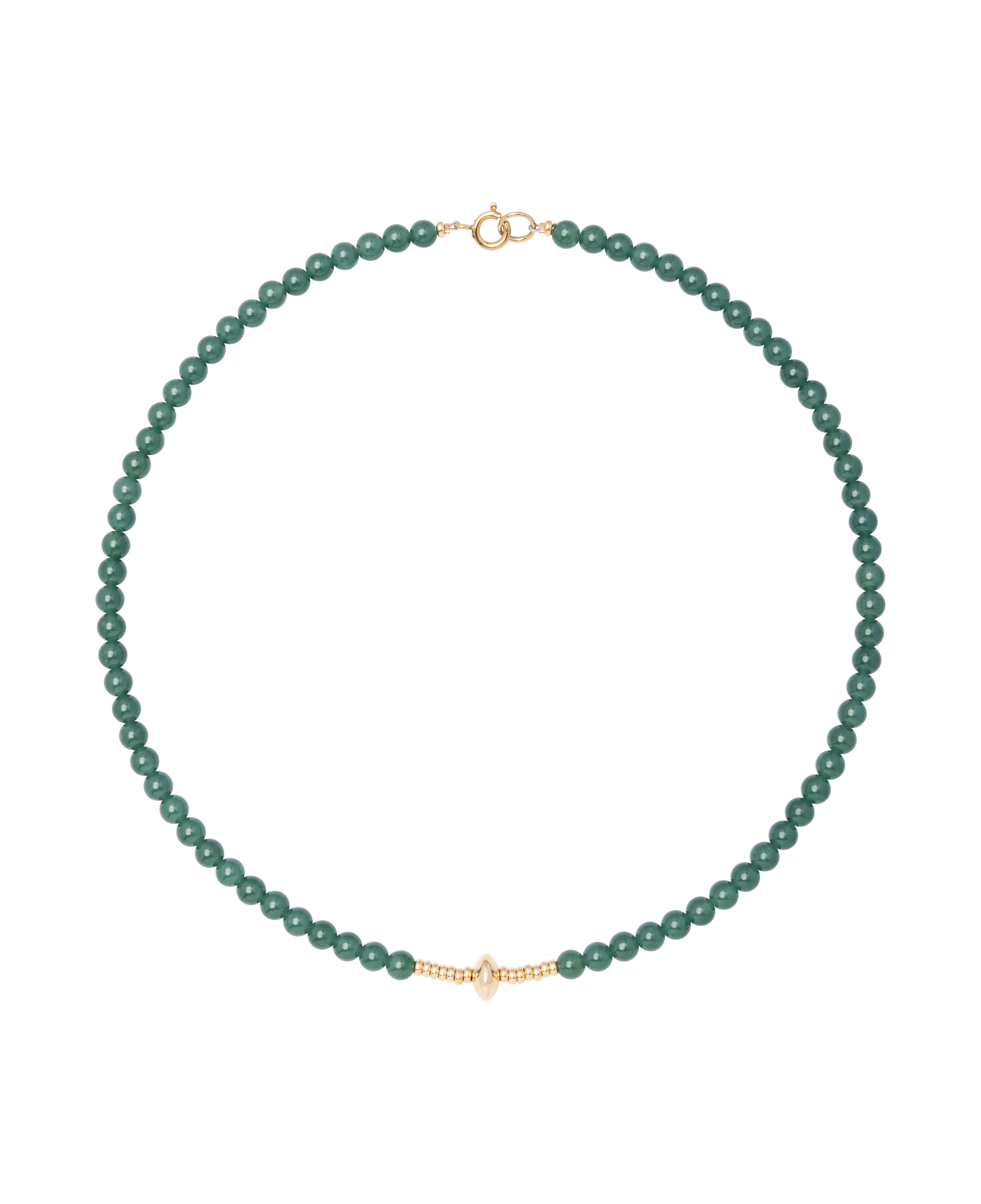 Where gold meets the jadeite, a dialogue between calm and strength. The Green Alloy series fuses luminous Bluewater Jadeite with warm 14K gold-filled accents, forming a delicate balance of nature’s purity and modern design.
