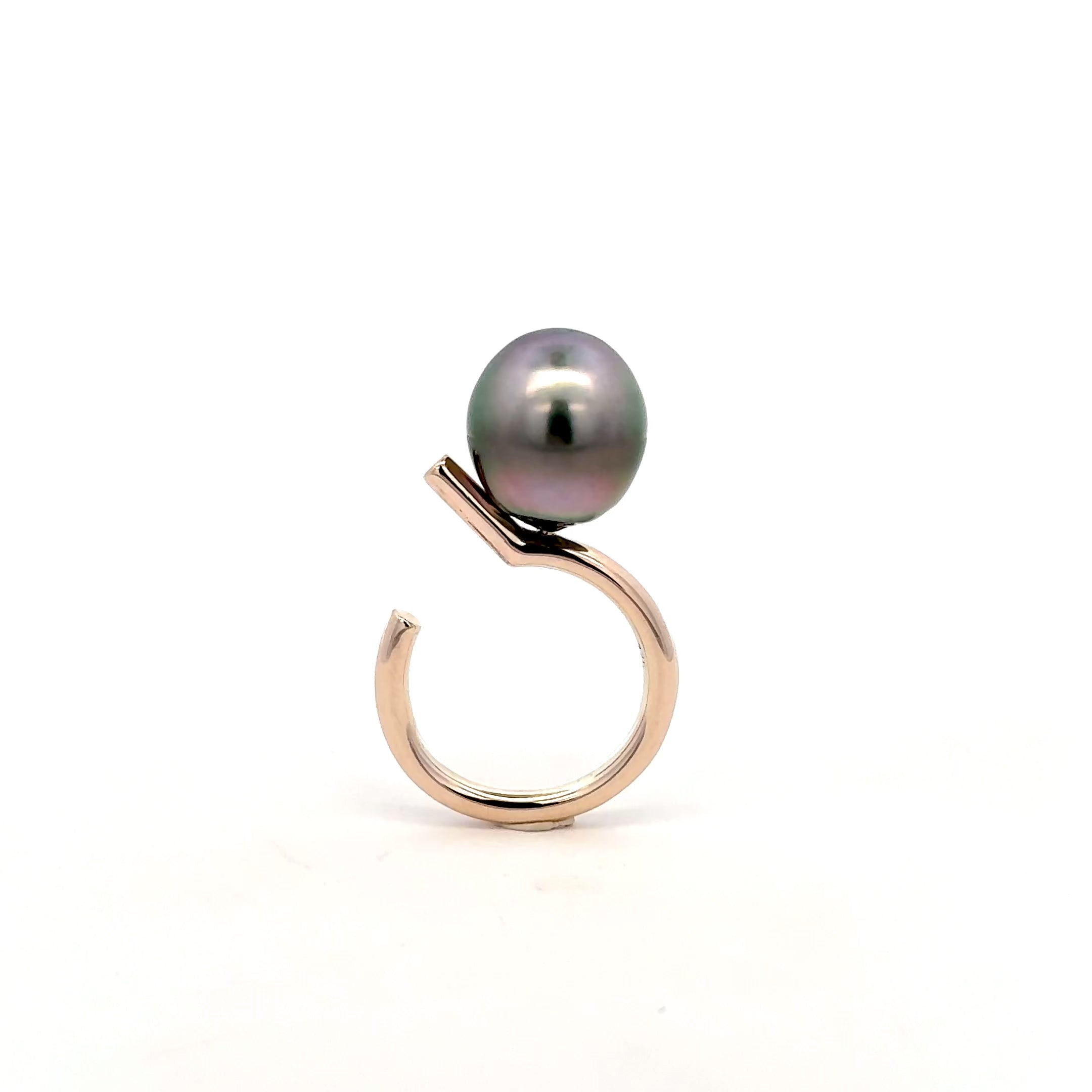 Bold, sculptural, and instinctively elegant. This Tahitian baroque pearl from French Polynesia carries a raw, unfiltered beauty that stands entirely on its own. Its near-black body glows with shifting iridescence, hints of green, blue, and silver that surface only under certain light.