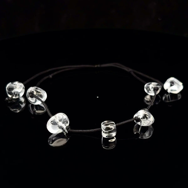 Made with luminous rock crystals and hand-knotted on minimalist threads, each piece reflects light in its purest form — calm, grounding, and endlessly wearable. Designed for quiet celebrations and soft resets, it becomes a companion for moments of reflection, travel, and lightness as the year turns anew.