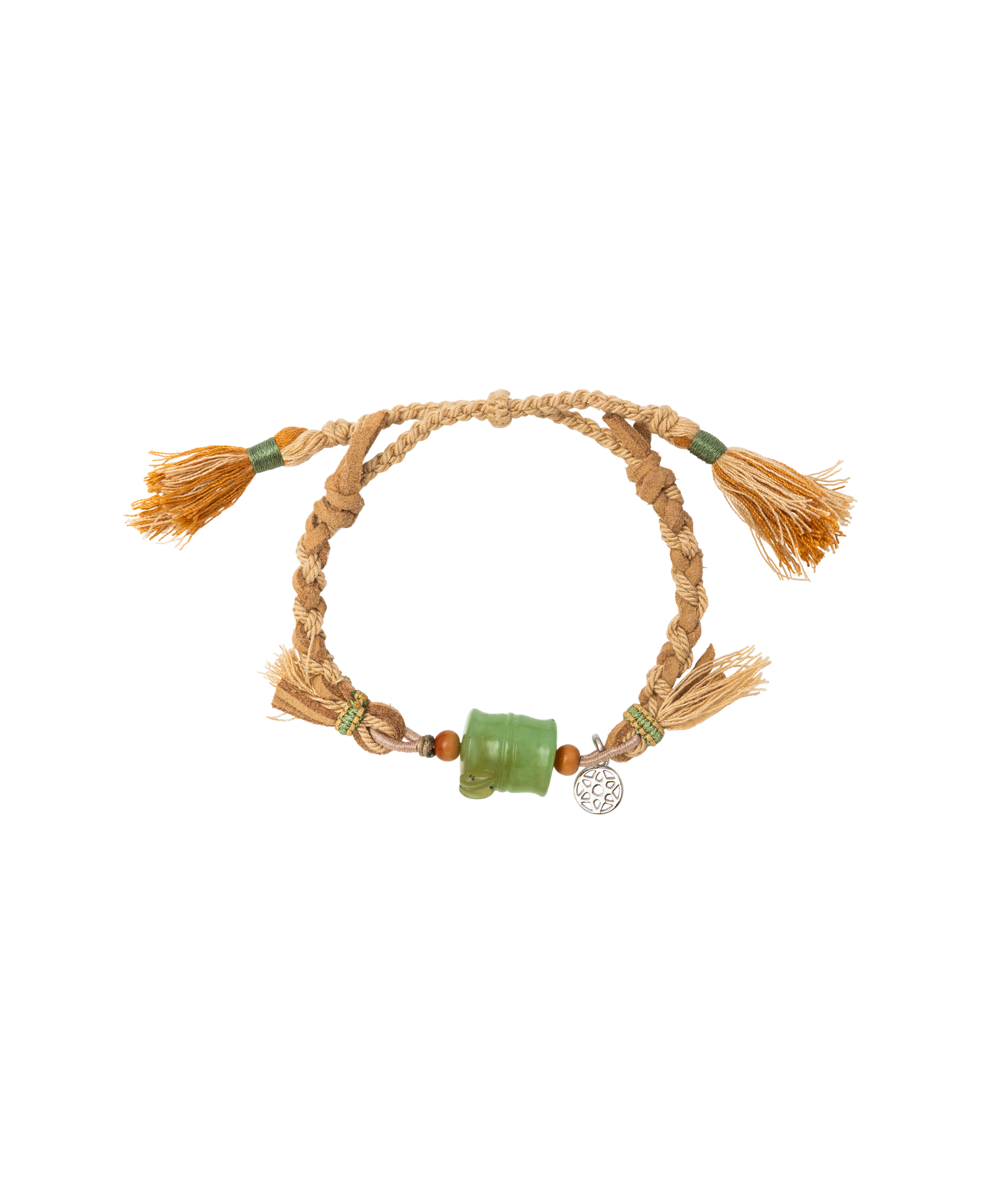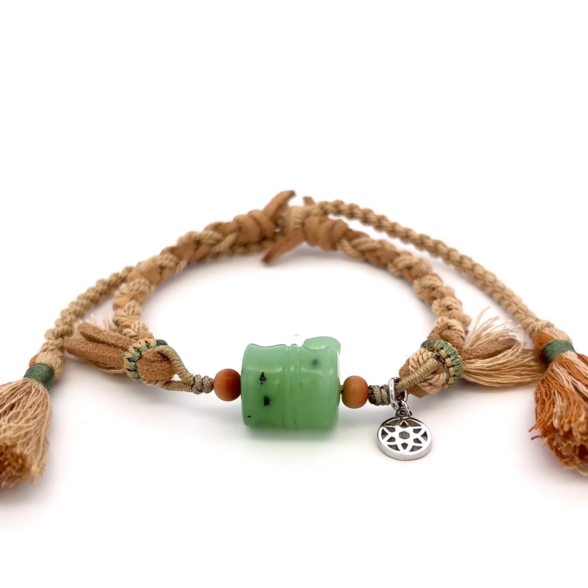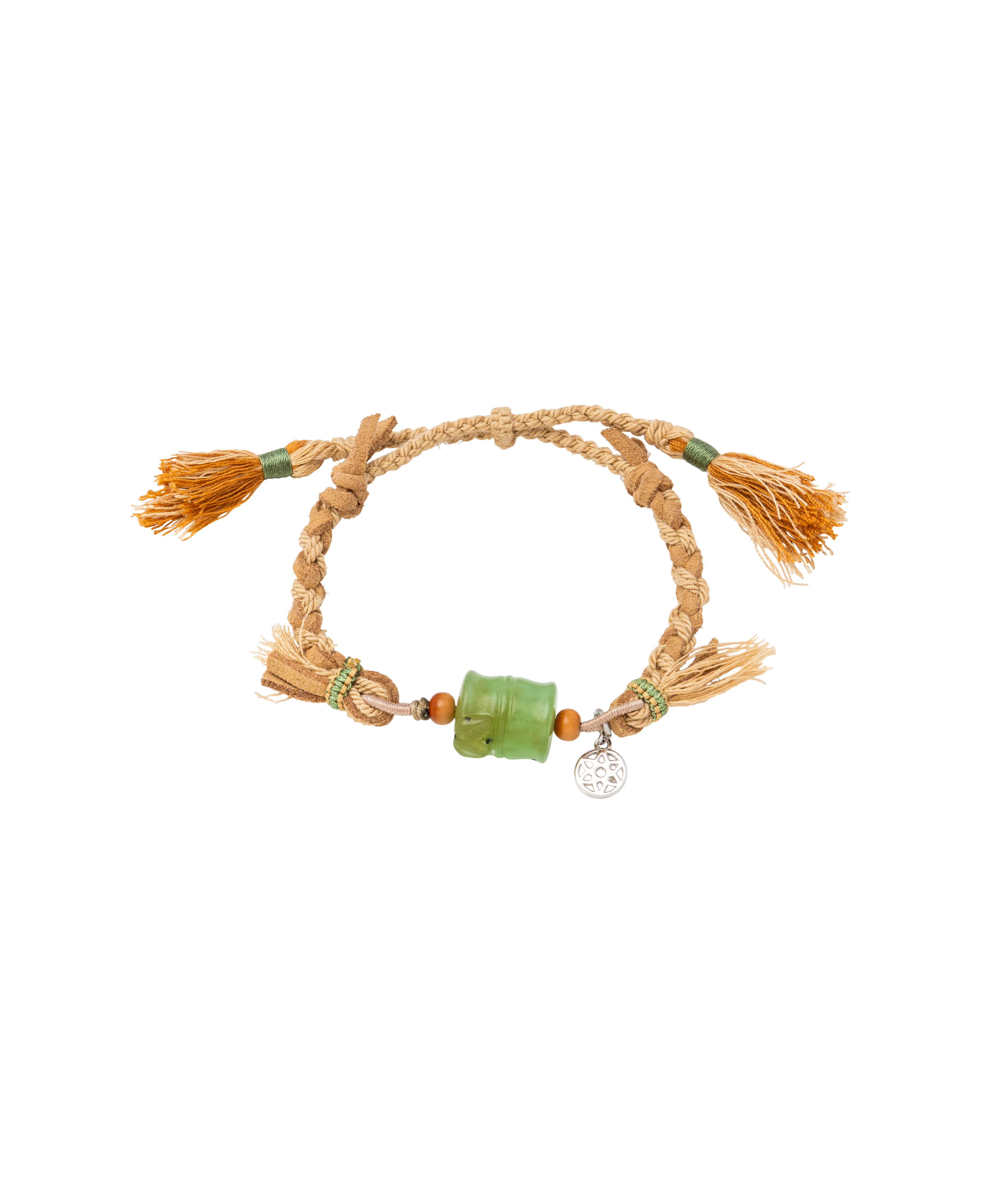 Each strand is meticulously crafted from braided fibers with heart, weaving a path of strength and devotion around your wrist. At the center lies the hand-carved Nephrite Jade bamboo, sourced from the ancient terrains of Xinjiang. In Chinese culture, bamboo is a symbol of longevity and eternal youth, bending but never breaking, its rapid growth represents "rising" success. Wear it as a talisman of resilience, a reminder to grow with grace and ascend toward your highest ambitions.