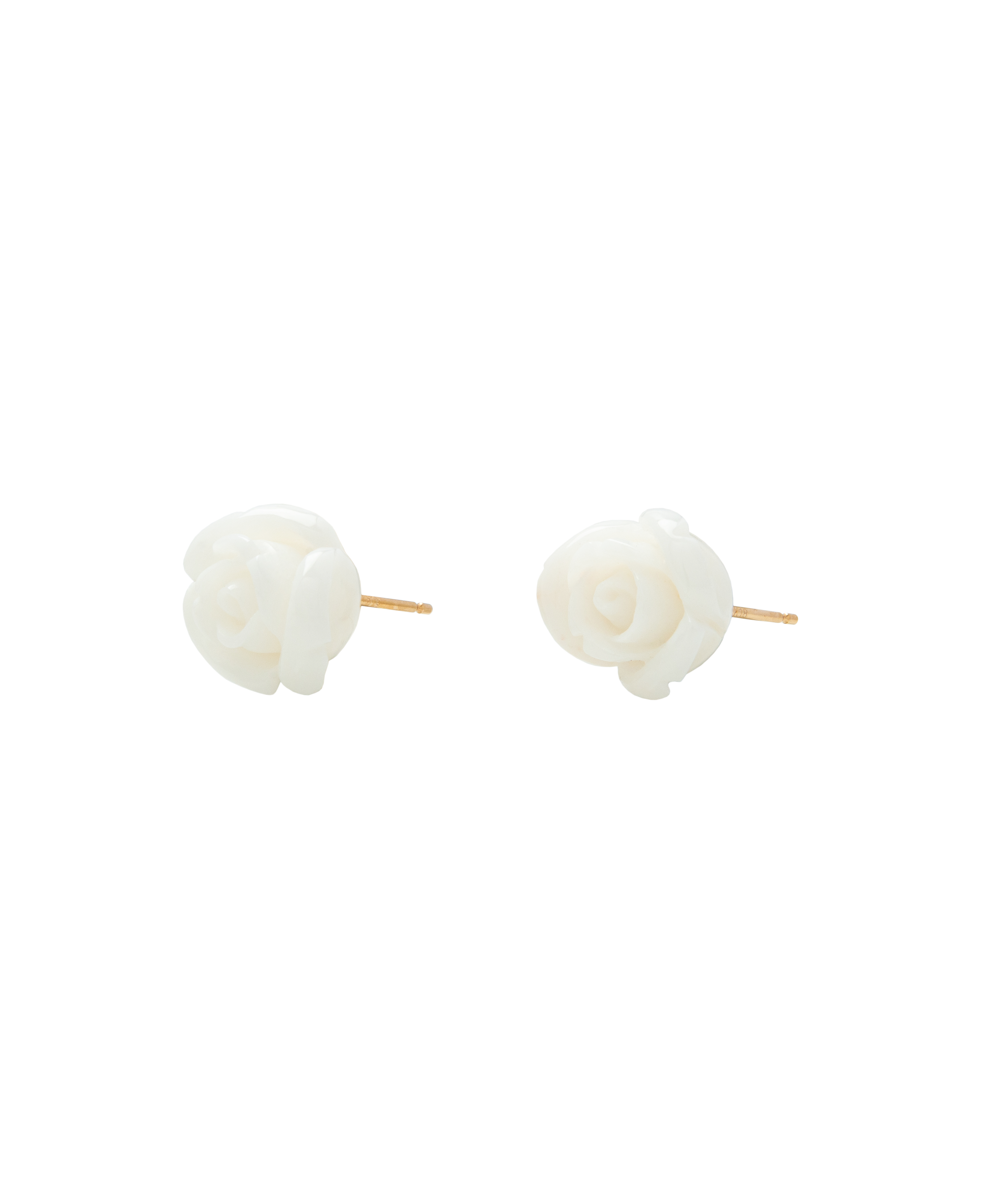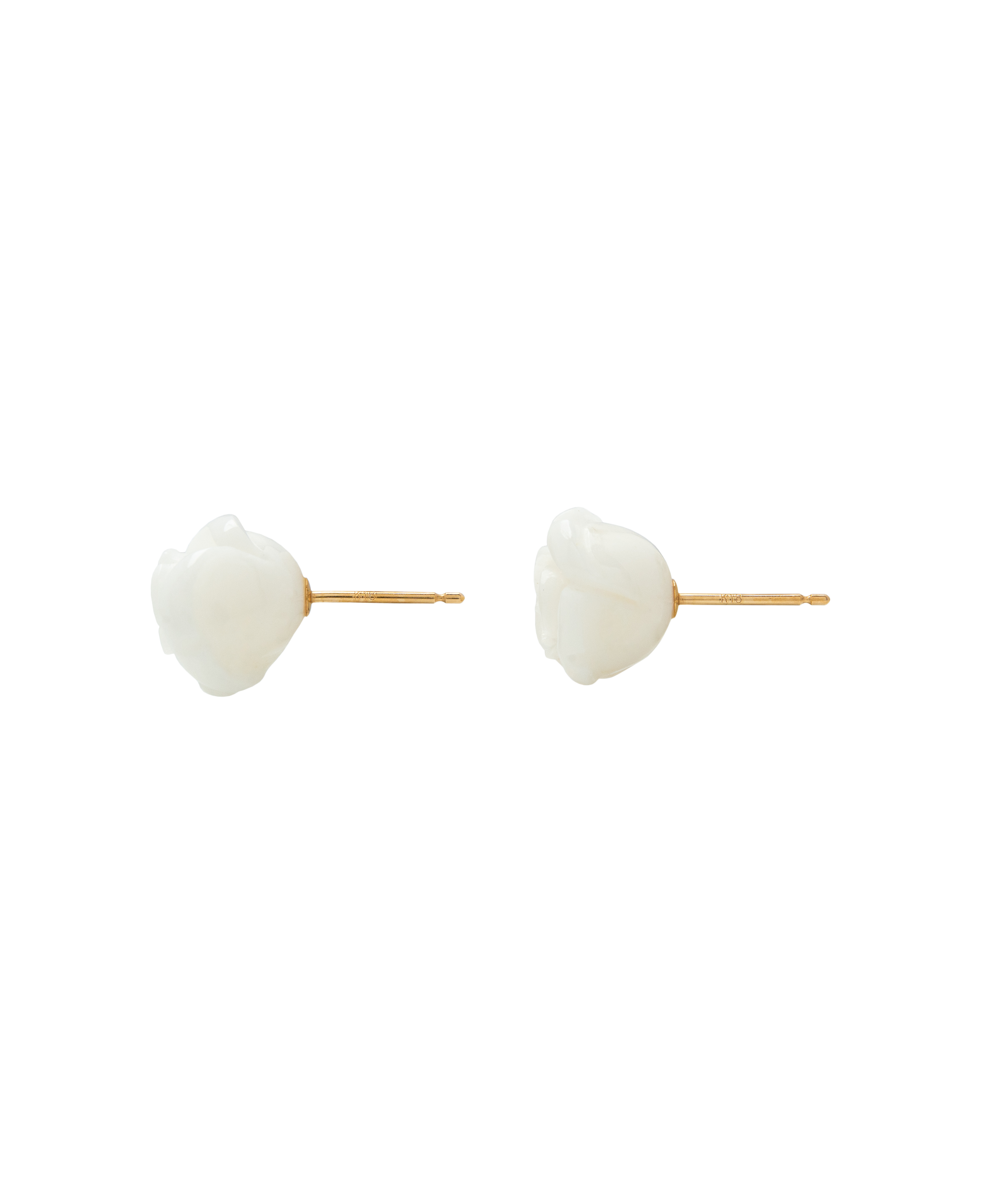 Sculpted from rare Shiro Sango white coral, each rose displays a pure snow-white body with a smooth, porcelain-like texture and a soft inner glow. Each rose is meticulously hand-carved layer by layer, capturing a real flower blooming quietly in a winter garden, kissed by falling snowflakes. Hand-polished to a velvety sheen and set in solid 18K gold, the studs reflect the refinement of vintage, timeless yet softly modern. Grown slowly over decades in the cold, clear waters of Kochi, this natural white coral carries the elegance of nature shaped by human artistry. Effortlessly versatile, the Shiro Sango Rose Ear Studs bring a touch of pure, poetic grace to both everyday wear.