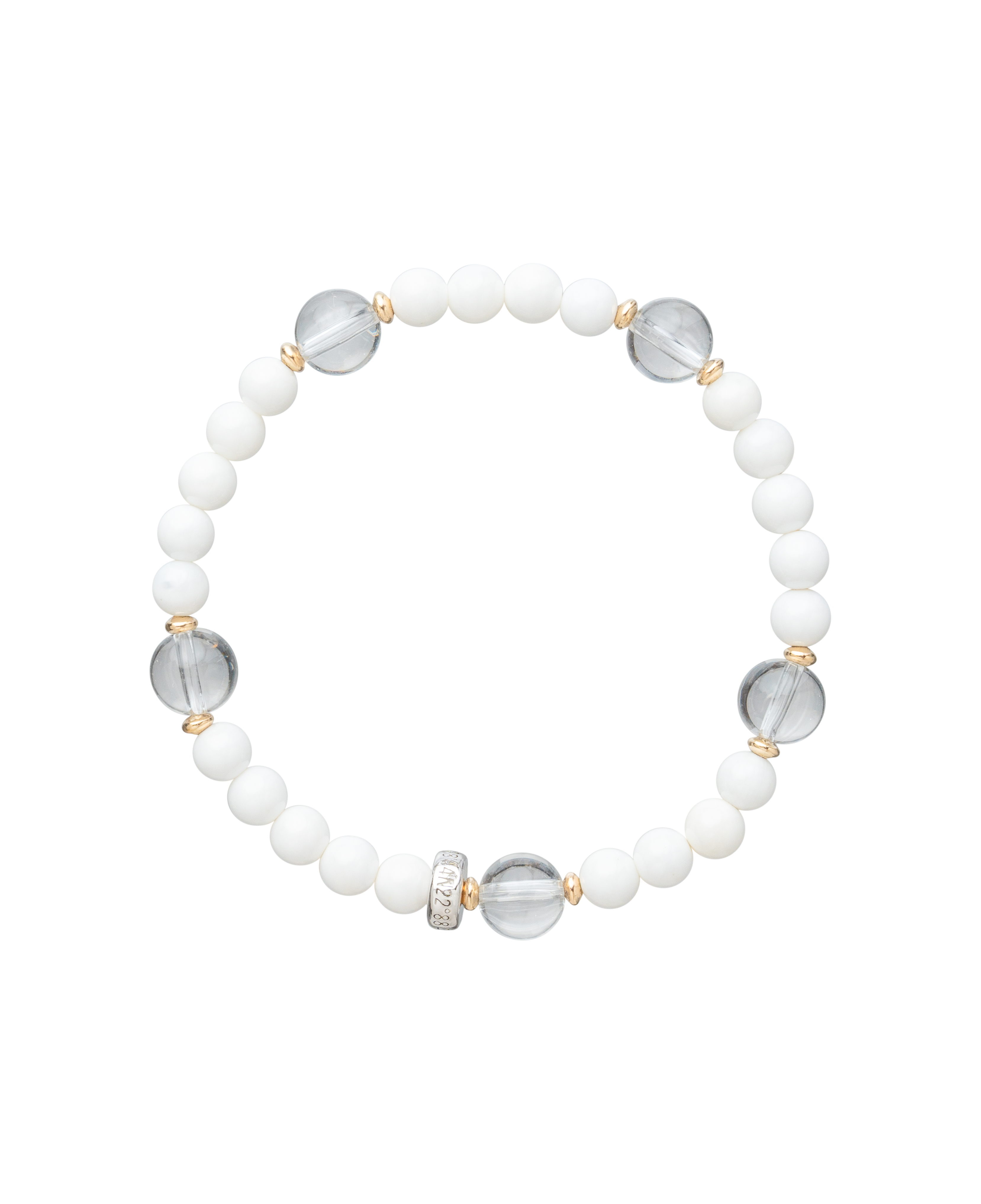 Each bead is accented with fine gold details, adding a whisper of warmth that recalls sunlight on soft white sand. Comfortable and versatile, the bracelet slips easily onto the wrist, carrying with it the ocean’s quiet power, the perfect match of this summer vibes. Wear it as a standalone piece for understated elegance, or stack with gold bangles or colorful bracelets to brighten the summer mood.