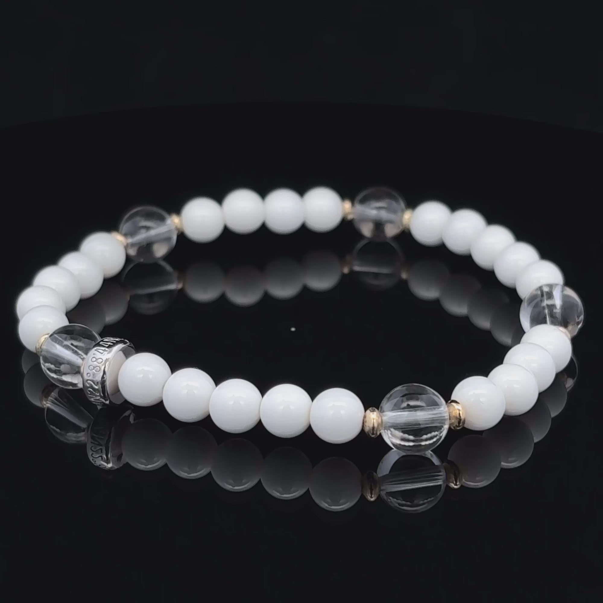 Strung in a harmonious rhythm of white Tridacna and clear Rock Crystal, the Summer Beach Bracelet is a study in simplicity and strength. Fossilized Tridacna, rare and enduring, brings a soothing calm and stabilizing energy, while Rock Crystal, the King of Quartz, cleanses and amplifies the spirit.