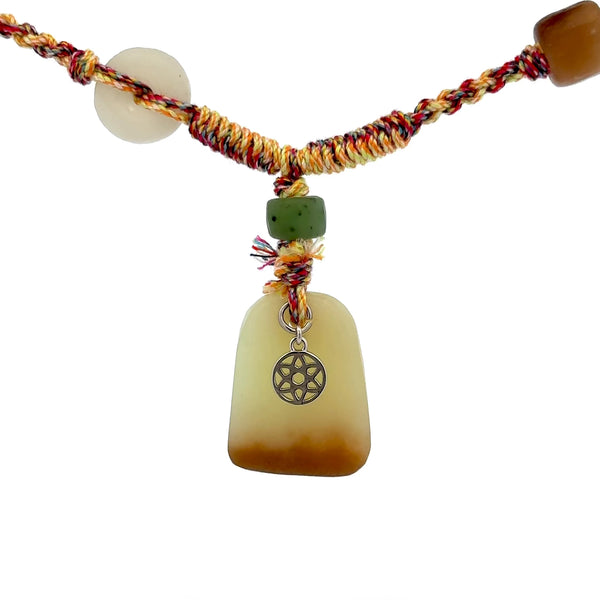 In the heart of Xinjiang, China, lies a treasure trove of rare jewels, each telling a story of tradition and honor. Crafted by skilled artisans, the Tribesman Jade Necklace features five magnificent Jade gemstones representing virtues cherished by the tribes: mercy, modesty, courage, valor, and wisdom. Smooth to the touch and gleaming with a natural luster, these gemstones reflect the strength and resilience of the tribesmen who wear them, honoring their legacy with every step.